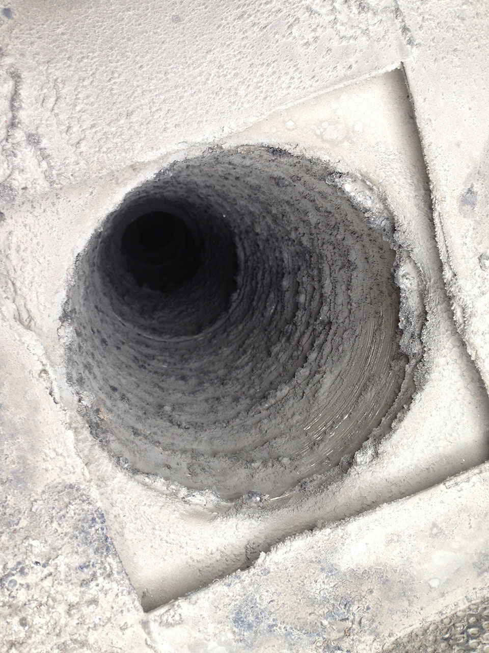 - A szellőzőcsövet szárazkefés módszerrel megtisztítjuk. Az erre a célra gyártott túl méretes kefe, valamint a nagyteljesítményű porelszívó biztosítja, hogy a függőleges szellőzőcső faláról a szennyeződést eltávolítjuk.